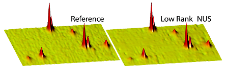 该文利用磁共振波谱时间域信号的矩阵低秩特性建立了欠采样下非参数化信号重建模型,再通过最优化计算方法重建出高质量的谱图。该方法可以克服利用谱图稀疏性的压缩感知方法造成的谱峰丢失和宽峰丢失问题,有利于提高磁共振波谱的灵敏性,为加速磁共振波谱采集和提高谱图质量提供了一种重要的方法,有望在蛋白质和化合物结构分析中获得重要应用。